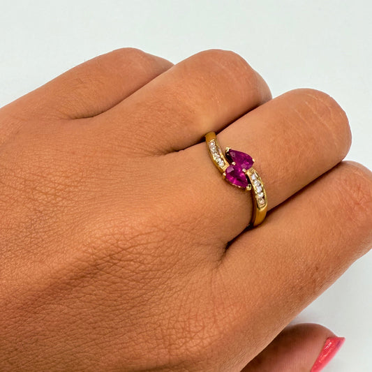Bague en Or jaune avec diamants et rubis 18k 2.50 Grs - Taille 56