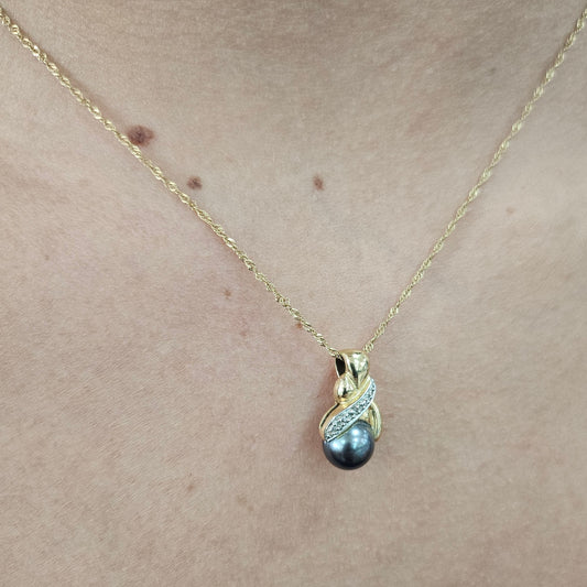 Collier en Or Jaune avec Perles et Diamants Longueur -22.50 cm