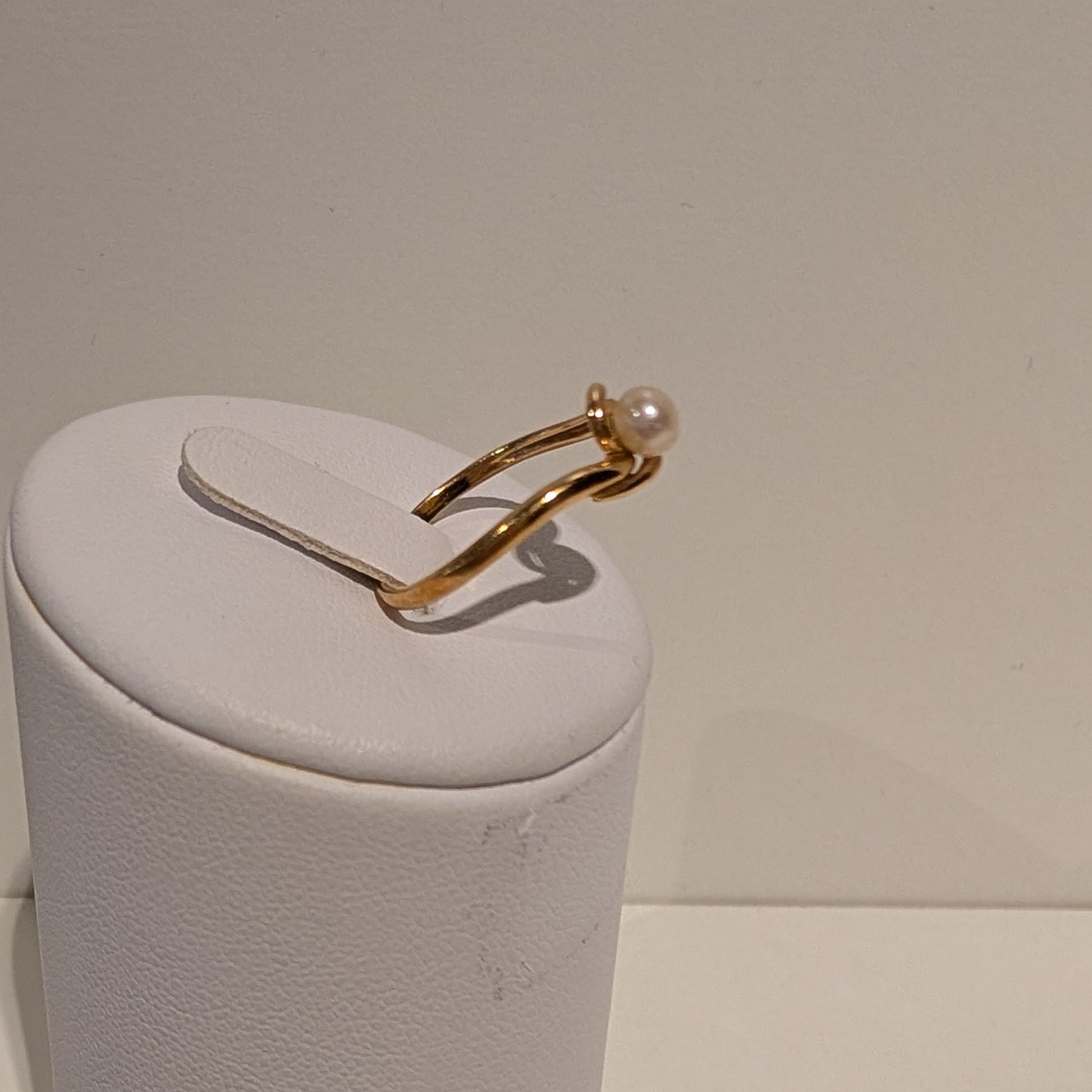 Bague empierrée en or jaune 18 carats (750/1000) sertie d’une perle naturelle. Taille 52, poids 1,30 g, poinçon 750, en bon état.