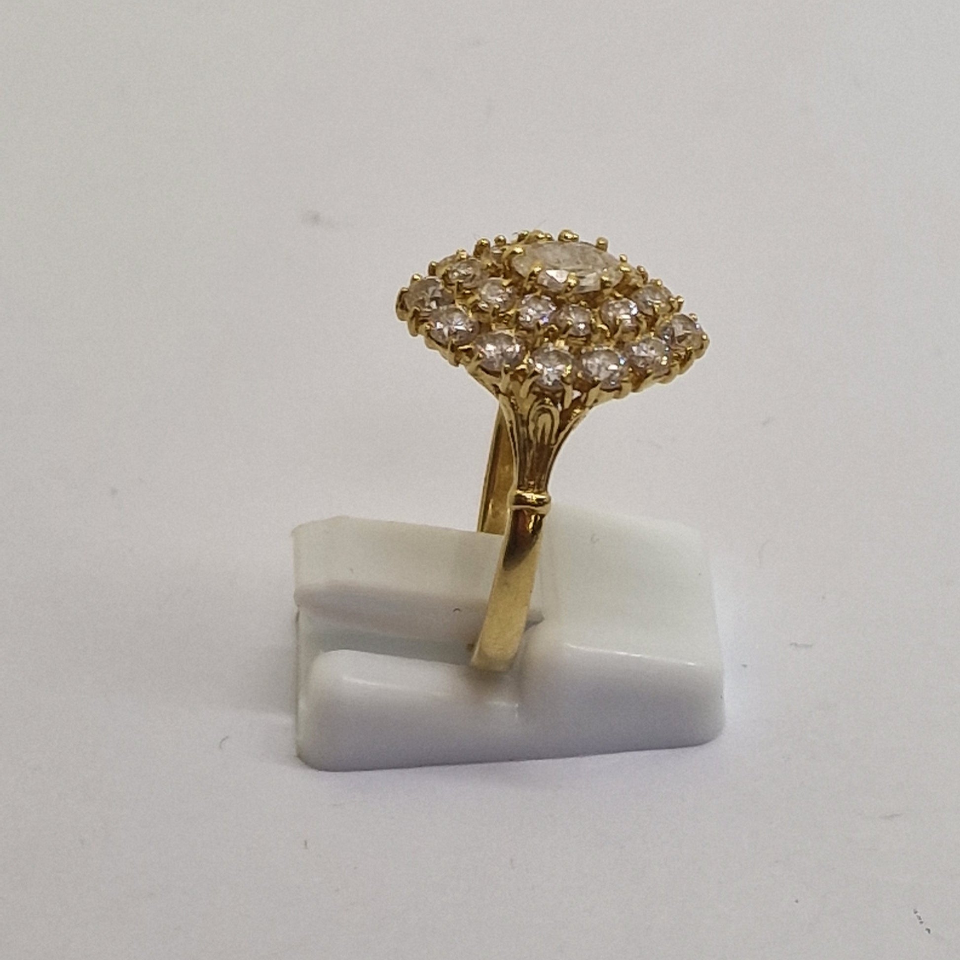 Bague marquise en or jaune 18 carats (750/1000) avec poinçon tête d’aigle. Pesant 4,75 g, elle est de taille 57 et sertie d’oxydes de zirconium. L’état général du bijou est très bon.