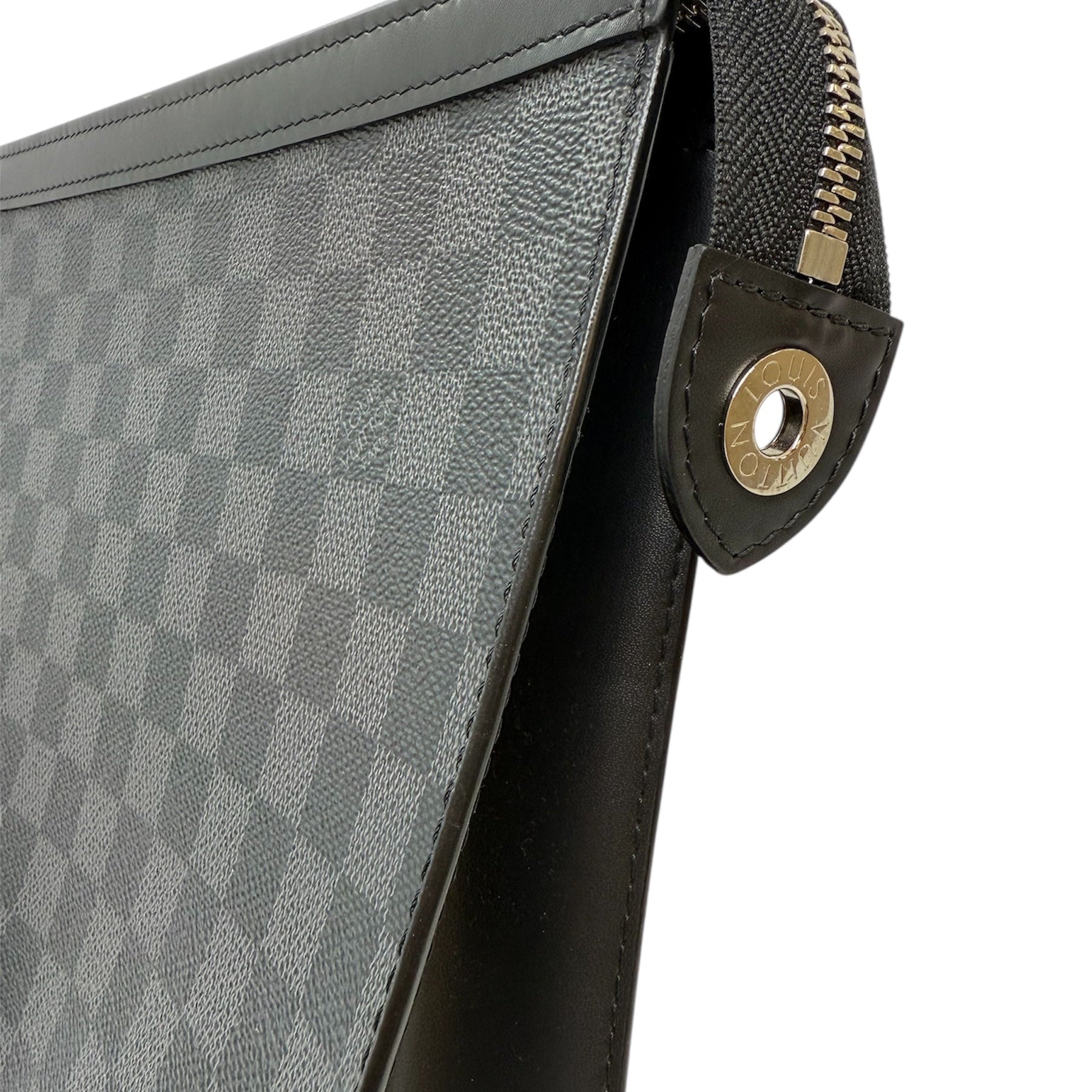 Pochette de voyage MM de la maison Louis Vuitton, en toile Damier. Ce modèle compact présente une hauteur de 20 cm, une largeur de 26,5 cm, une épaisseur de 6 cm et une profondeur de 20 cm. En très bon état général, cette pièce est proposée sans accessoires spécifiques mentionnés.