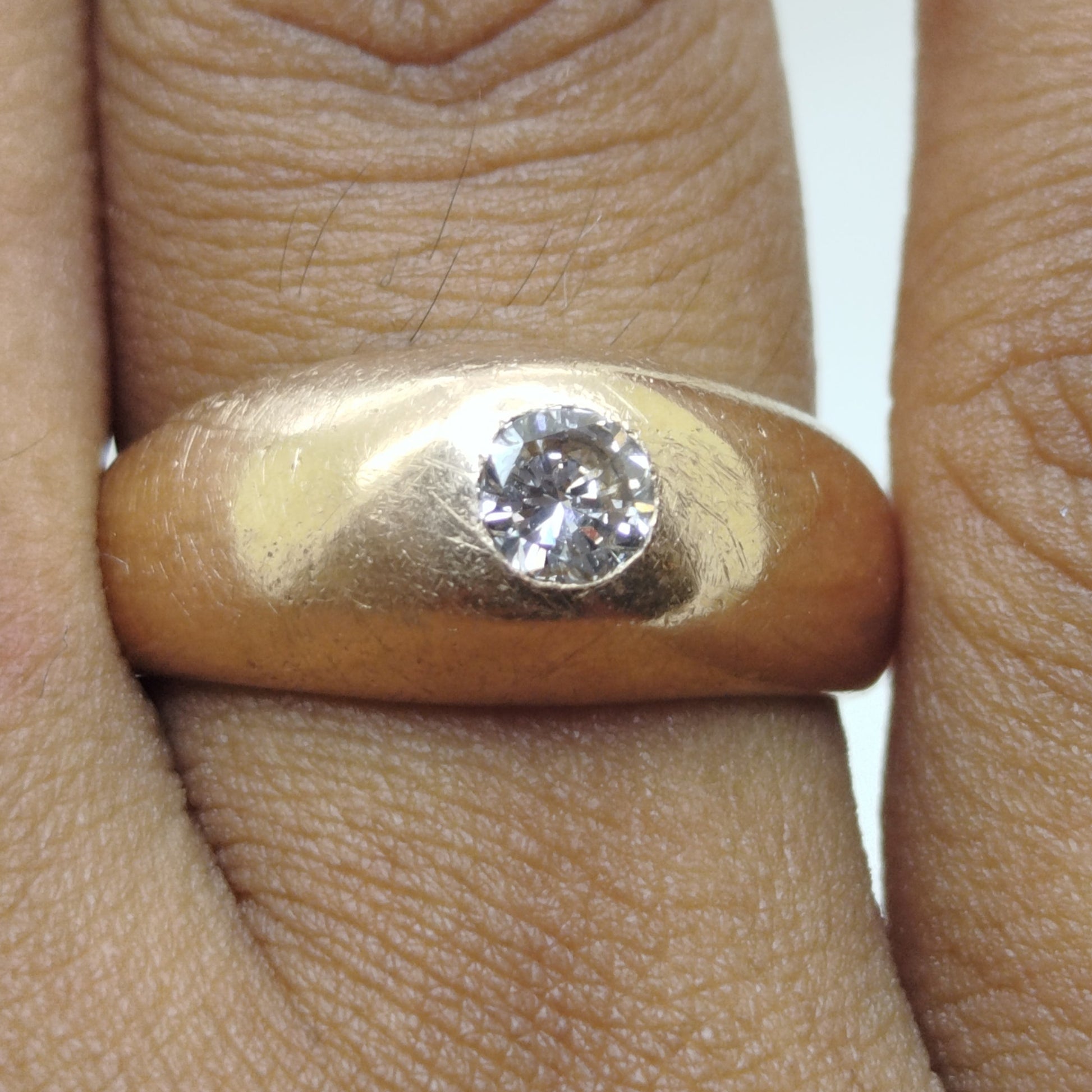 Bague jonc en or jaune 18K avec diamant, taille 53 - 6.89g