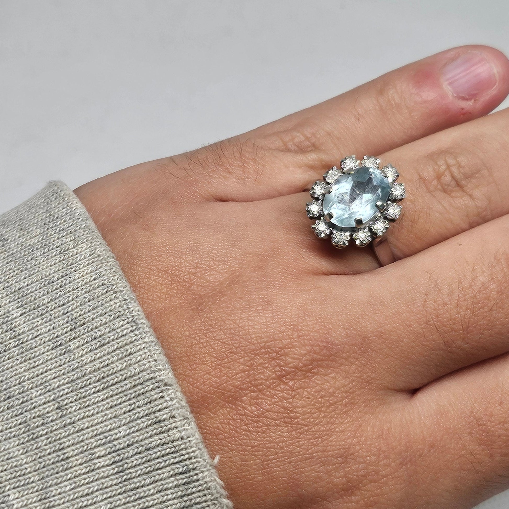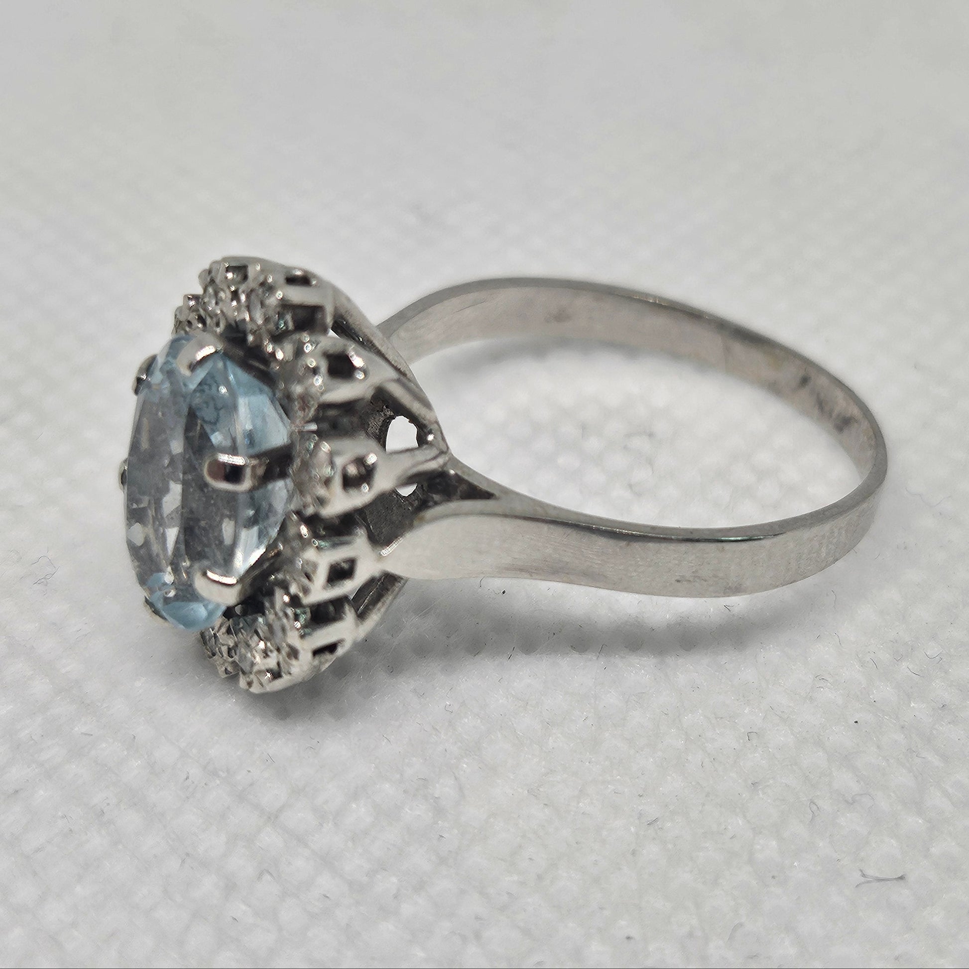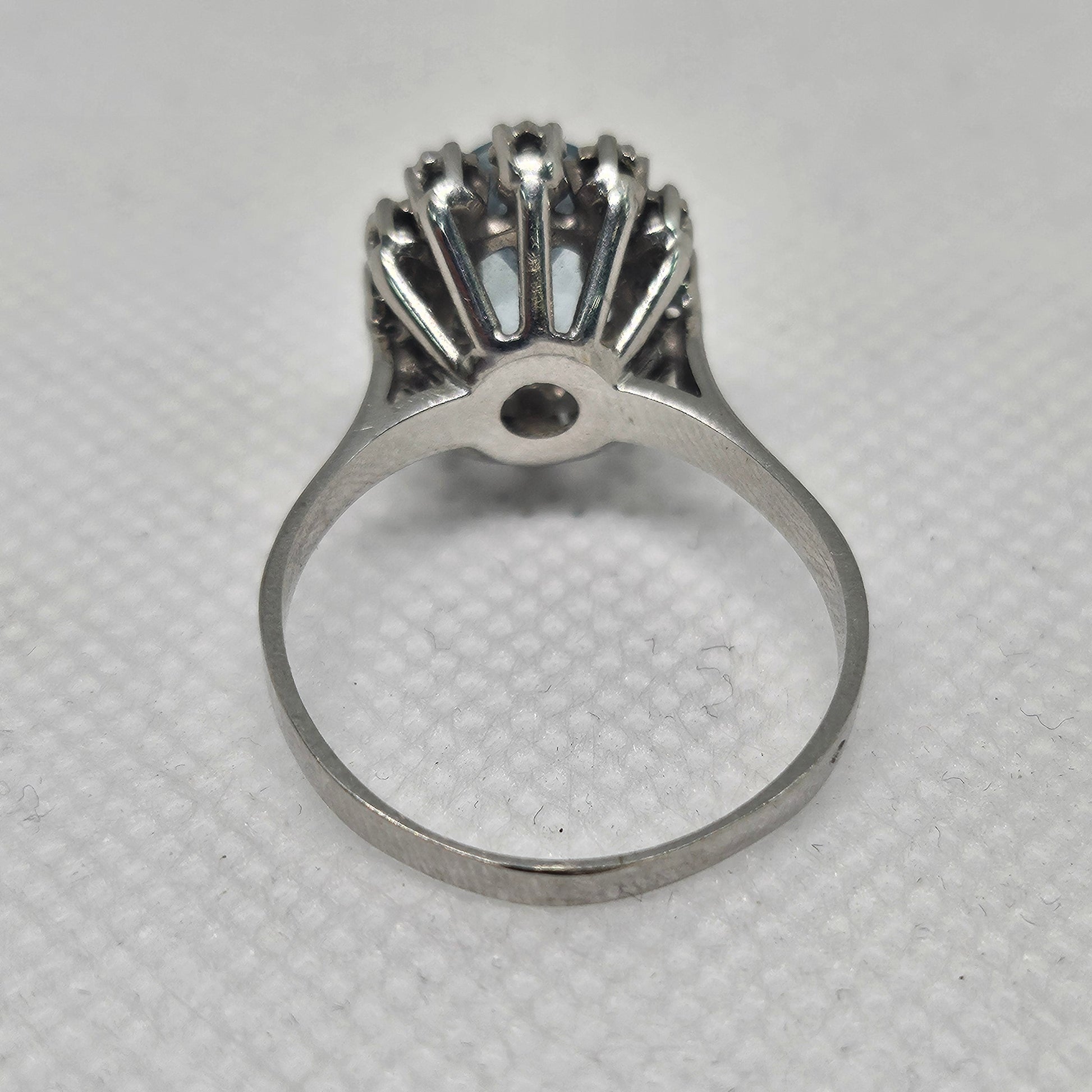 Bague Marguerite Or Gris 18 Carats Aigue Marine Diamants Taille 58