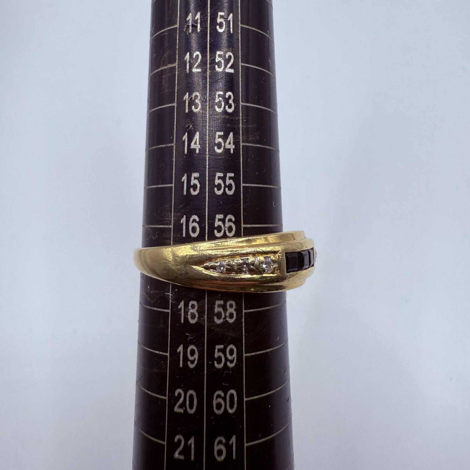 Bague empierrée en or jaune 18 carats (750/1000) est élégamment agrémentée de diamants. Elle pèse 3.74 grammes et a une taille de 57. Bien qu’elle ne porte pas de poinçon, elle est en bon état, offrant un design raffiné et intemporel.
