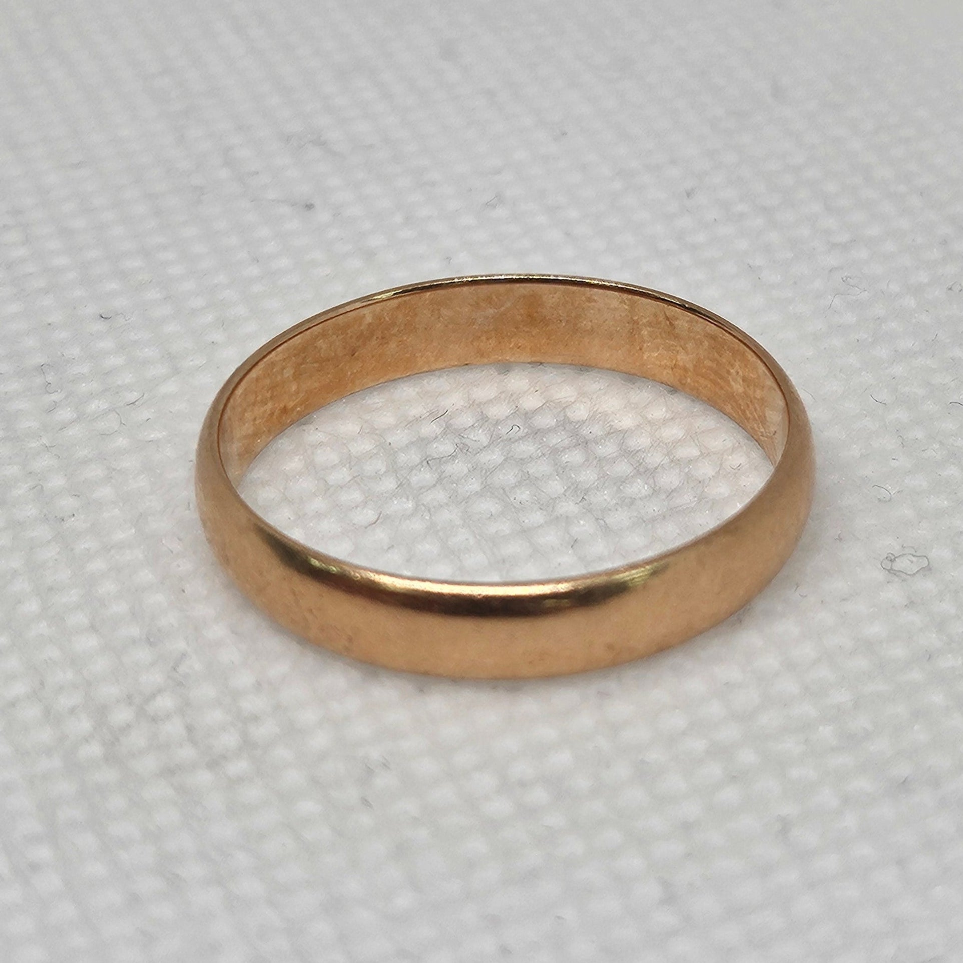 Alliance en or jaune 18 carats, poinçon tête d’aigle. Taille 60, poids 3,73 g, sans pierres, en très bon état.