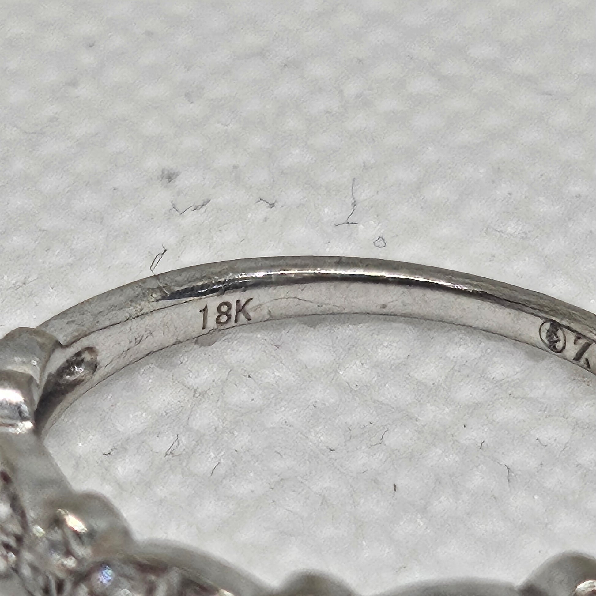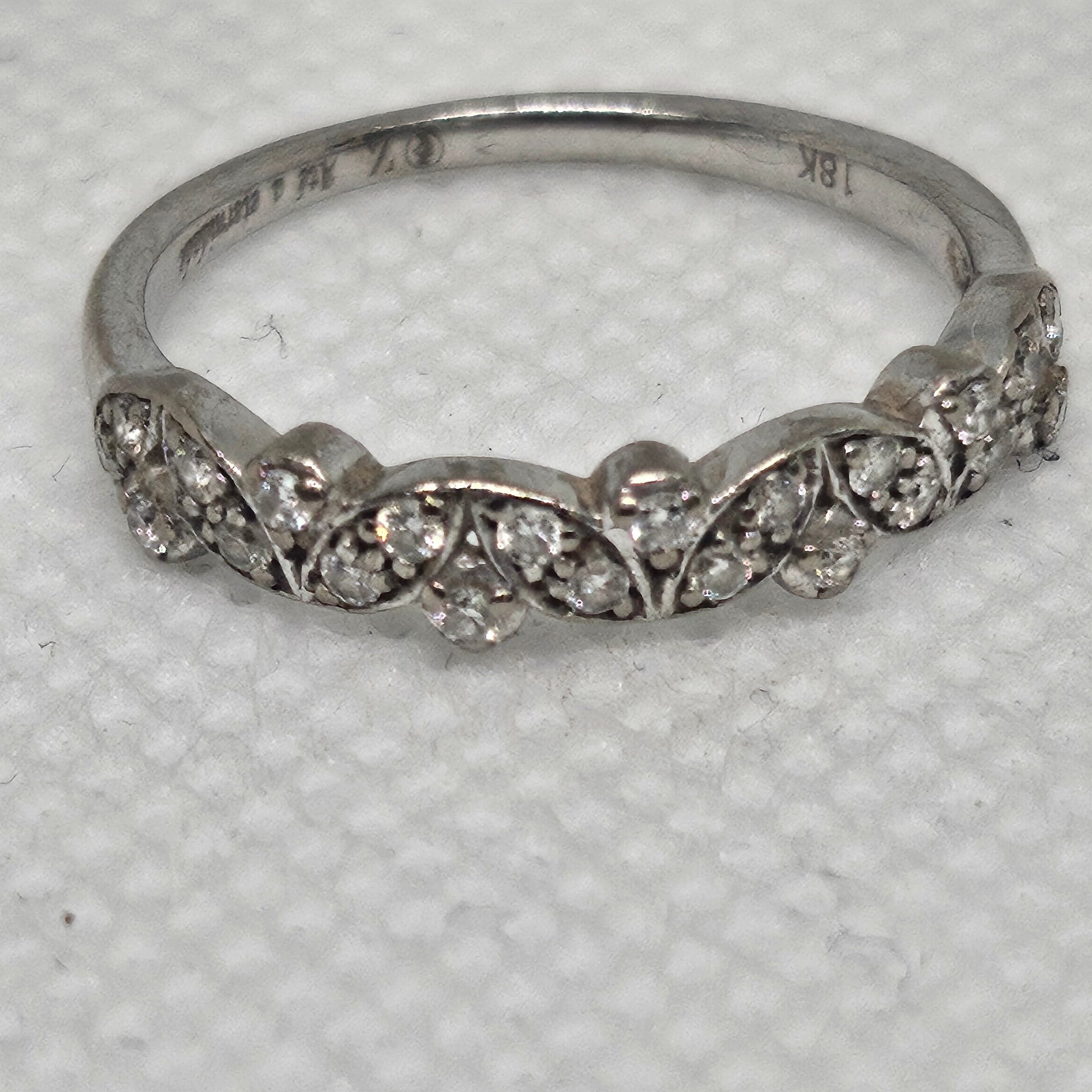 Bague empierrée en or gris 18 carats, poinçon tête d’aigle. Taille 50, poids 2,08 g, sertie de 23 éclats de diamants, en très bon état.
