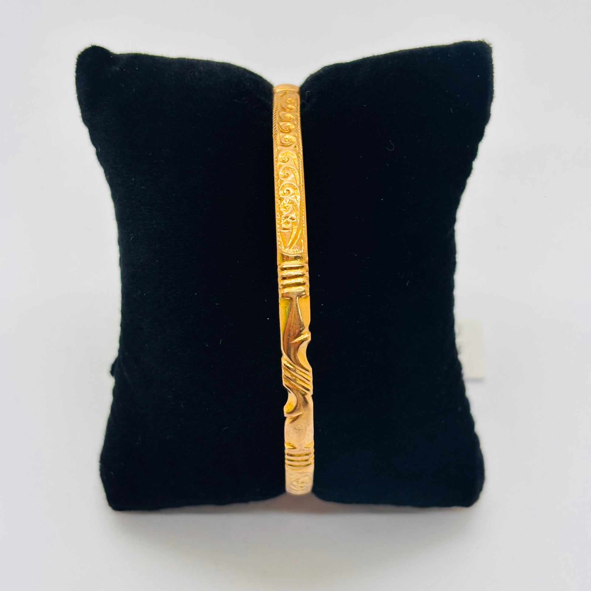 Bracelet jonc en or jaune 18 carats (750/1000), sans poinçon; il pèse 13.29 grammes, mesure 21.5 CM de long sur 6.2 CM de large, avec une épaisseur de 5MM, ne contient aucune pierre et est en très bon état.