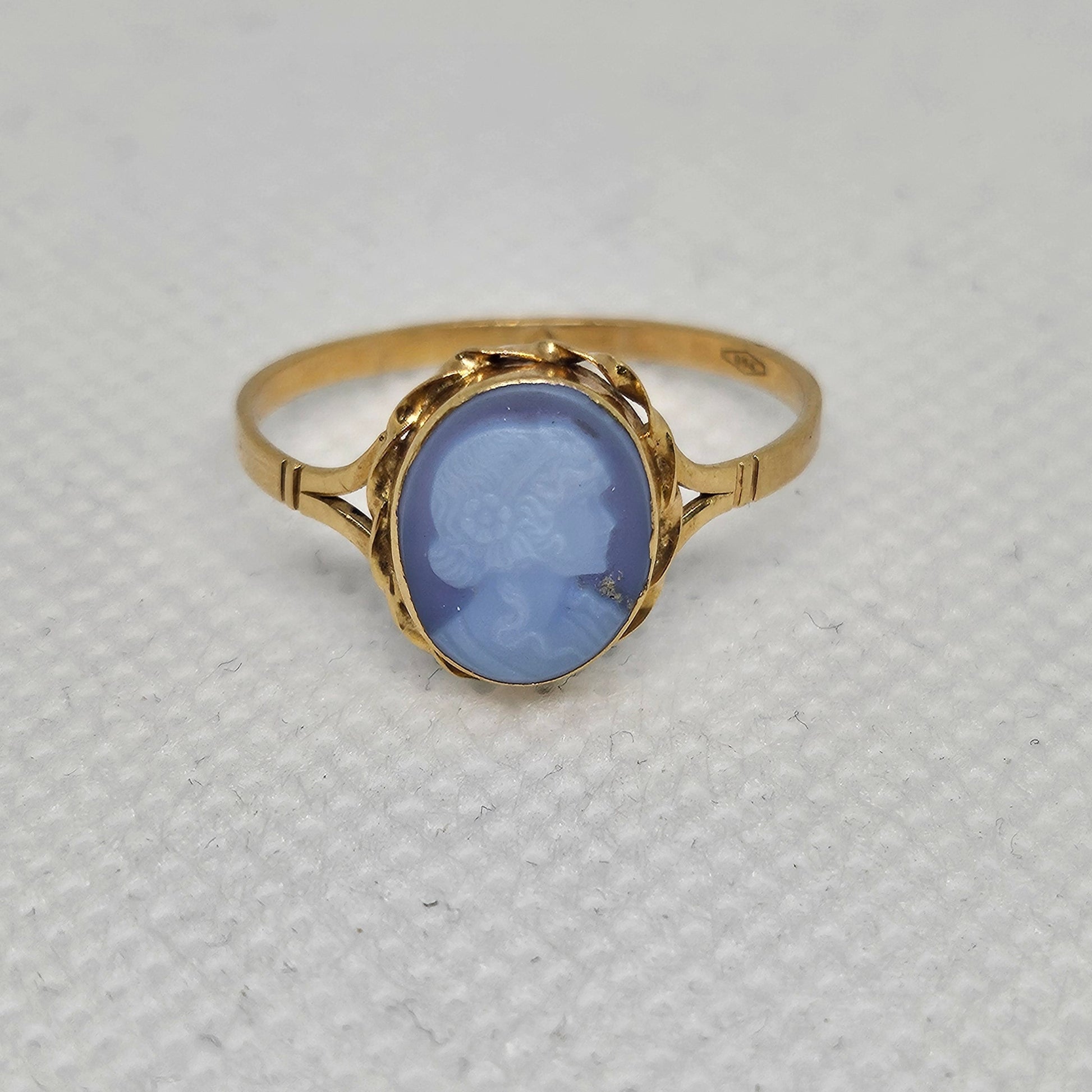 Bague camée en or jaune 18 carats, poinçon hibou. Taille 58, poids 3,30 g, sans pierres, en bon état.