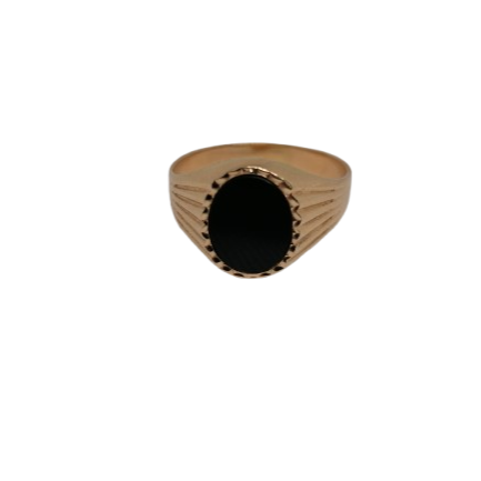 Bague chevalière en or jaune 18 carats (750/1000), poinçonnée tête d'aigle, pèse 9.51 grammes. Elle est de taille 77 et ne contient aucune pierre. En très bon état, elle combine élégance et solidité.