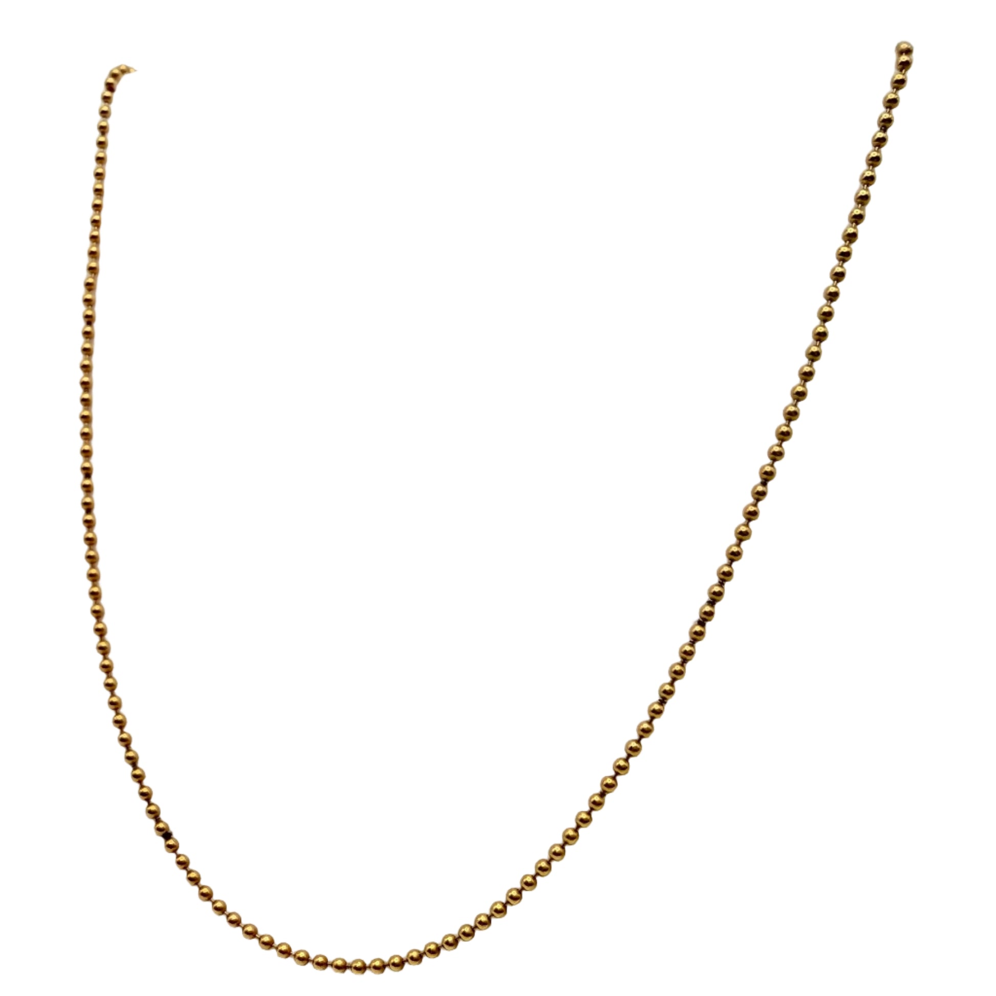 ce collier à maille boule en or 750/1000 affiche une longueur de 44 cm pour un poids de 6,05 g. Son fermoir à anneau ressort assure sécurité et confort au porté. En très bon état