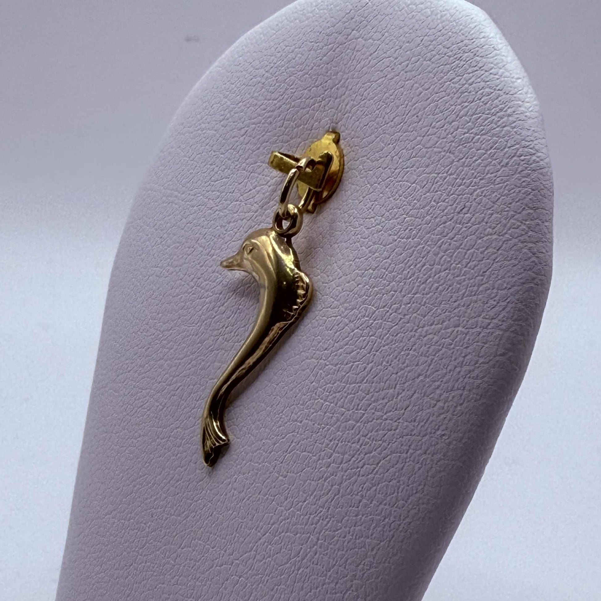 Élégant pendentif en or jaune 585/1000, finement travaillé en forme de dauphin, symbole de liberté et de grâce, idéal pour apporter une touche raffinée et originale à votre style.